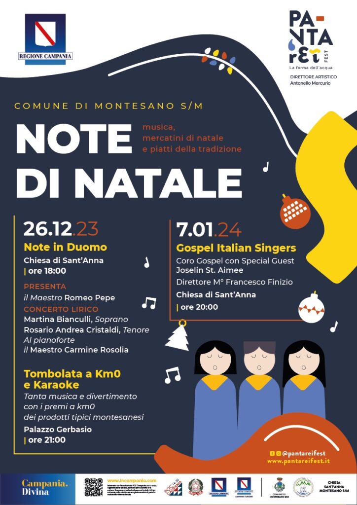 Il 26 dicembre, a Montesano sulla Marcellana, parte la festa con “Note di Natale: musica, mercatini e giochi della tradizione popolare”. Alle 18:00, presso la Chiesa di Sant’Anna, è in programma un concerto lirico con la partecipazione del soprano Martina Bianculli, del tenore Rosario Andrea Cristaldi e del maestro Carmine Rosolia al piano.